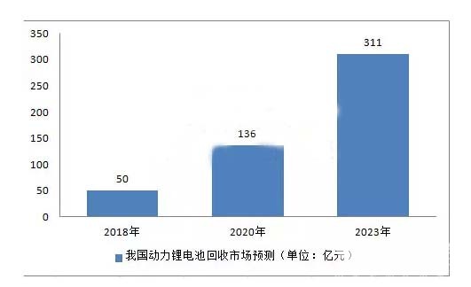 仅以动力锂电池为例,业界认为,到 2018 年我国动力锂电池回收市场将达 50 亿元,到 2020 与 2023 年,动力锂电池市场规模将可进一步增长到 136 亿元与 311 亿元。