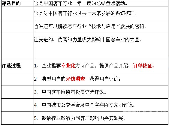 据第11届影响中国客车业系列活动组委会相关负责人介绍,本次读者调查评选活动得到了宇通客车、金龙客车、海格客车、金旅客车、中通客车、恒通客车、申龙客车、安凯客车、珠海银隆、福田欧辉、比亚迪、中车时代电动、美国康明斯、东风康明斯、艾里逊、采埃孚、欧科佳、CATL、微宏、中航锂电等50余家国内外知名客车及零部件企业的参与,评选活动主要通过完美作业网有免费视频网上评选专题的方式进行,广大网友可以为最优秀的、最值得推荐的产品投票,并发表自己对该产品的使用心得,借此真实、直观地传递网友的意见和看法。