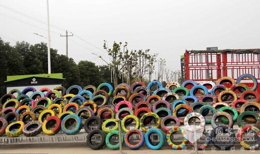 2016年12月14日消息:日前,在安徽省芜湖市的一条街道边,一组被涂上蝴蝶、蜻蜓、青蛙、快乐猴等有趣图案的废旧轮胎吸引了不少路人的目光。这些轮胎上还有“梦想加油、健康快乐”等充满“正能量”的文字,让冬日的街头多了份温暖。