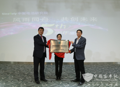 在庆典活动中,苗总与马院长为“上海电化学能源器件工程技术研究中心”举行了隆重的揭牌仪式。同时揭牌的还有中聚电池研究院“杭州动力电池系统研究所”。