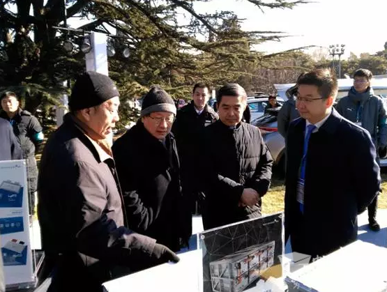 全国政协副主席、科技部部长万钢、中汽协常务副会长董扬、中国电动汽车百人会执行副理事长欧阳明高参观微宏展台