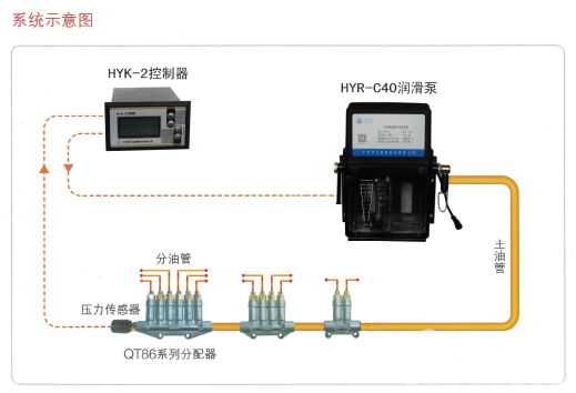 以现场展出的HYR-C40底盘集中润滑系统为例,其由一个24V或12V直流电机带动齿轮泵旋转,通过一个溢流阀和卸压阀组成一个泵源系统,其工作或休息由HYK-2程控器控制。整个外形为半封闭状,以防外力打击透明邮箱,技术成熟,性能稳定,润滑点多,满足普遍需求,省时省力。