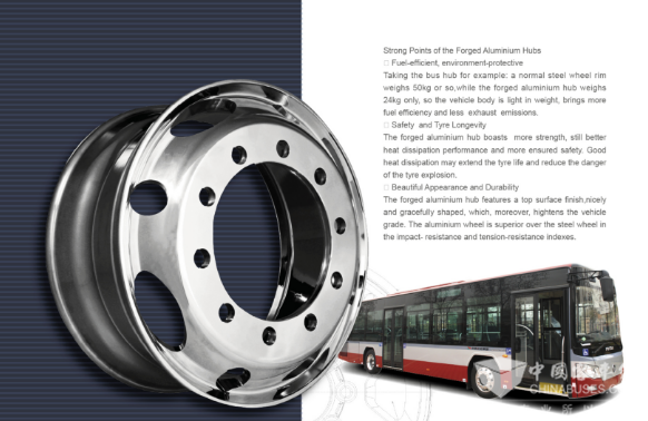 此次亮相天津车展的高级锻造镁铝合金轮毂具备重量轻、强度高、安全可靠、造型美观等诸多优势。据悉,锻造铝合金轮毂具有如下优点:第一,省油、环保。以大客车轮毂为例,一般钢圈中50kg,而锻造铝轮毂只有24kg,车身轻,燃油更经济、排放少。第二,安全、省胎。锻造铝轮毂强度更大,散热性能更佳,安全更有保证,铝轮散热好,可延长轮胎寿命,降低爆胎危险。第三,美观、耐用。锻造铝轮毂表面光洁度高,造型美观大方,更能提升车辆档次。铝轮抗冲击力、抗张力等指标高于钢轮。
