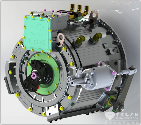 而2150Nm大混联系统,则适用于10米以上客车。该系统电机采用上海电驱动最新冲片,其空载反电动势波形正弦度极佳,进一步改善了低速区的转矩脉动,大幅度削弱了电机的振动与噪音。电机的最高效率均大于96%。该系统具有高性价比,在节油方面表现优异,目前已经进入批产状态。