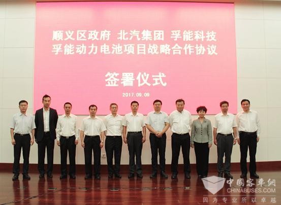 顺义区委常委、副区长初军威、孚能科技(赣州)有限公司董事长兼总裁 王瑀、北汽集团总经理张夕勇及签约三方相关领导出席并见证了签约仪式。