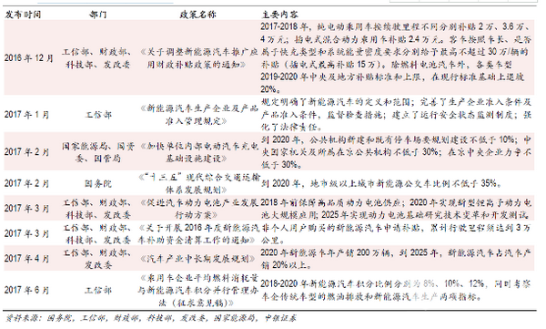 近期国内新能源汽车政策汇总