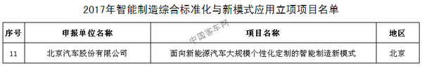 2017年9月15日—24日,按照《智能制造发展规划(2016-2020年)》《智能制造工程实施指南(2016-2020年)》的要求,工信部公示了“2017年智能制造试点示范项目”,列示项目98个,其中,其中涉及汽车产业的18项。