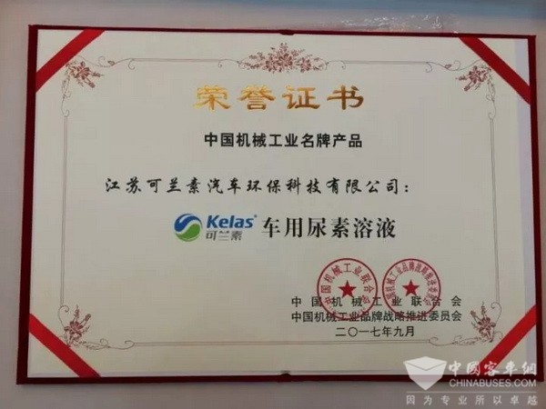 2017年9月26日,中国机械工业协会在北京召开全国机械工业质量品牌提升大会,会上表彰了2017年机械工业质量品牌提升行动年活动中的质量诚信企业、名牌产品等优秀组织单位和个人,可兰素在本次大会上被授予“中国机械工业名牌产品”荣誉称号。