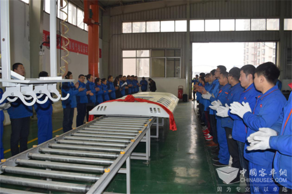 11时许,在通盛制冷举行了国内首台全直流喷气增焓客车空调正式下线仪式。科技局李局长、景局长、丁科长、李科长、通盛公司经营团队全体成员、全体技术人员和部分员工代表参加了下线仪式。首先,朱广栋总工程师宣布直流喷气增焓客车空调正式下线,科技局李局长发表重要讲话,李局长首先对通盛制冷取得这么大的成果表示祝贺,并对通盛制冷多年来技术创新给予肯定。最后总经理张宪毅做了重要讲话:通盛制冷多年来,以产品立足市场,不断加大科技投入,特别是近三年取得了大量技术成果,国内首台全直流喷气增焓客车空调就是代表性的成果之一,张总勉励技术人员百尺竿头,更进一步,创造更多的技术成果,推动公司的长期健康发展 。