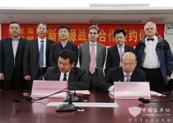1月8日,玉柴股份与厦门金龙汽车集团股份有限公司就新能源产品达成战略合作。玉柴股份总裁吴其伟和金龙集团总裁谢思瑜代表双方公司在战略合作协议书上签字。