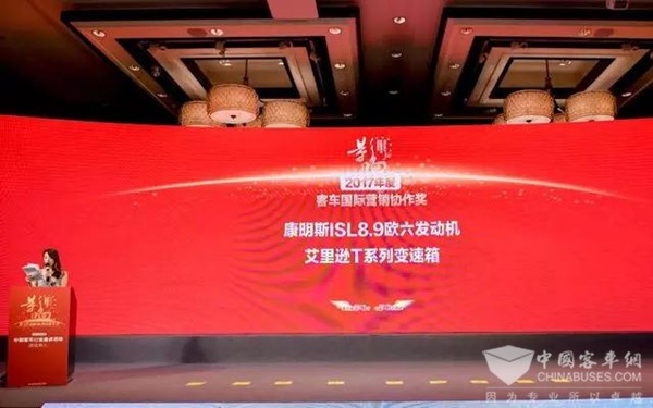康明斯ISL8.9欧VI发动机摘得客车国际营销协作奖。康明斯ISL系列8.9升全电控发动机,功率覆盖280-400马力,与同等排量发动机相比重量更轻,结构更紧凑,动力更强大。ISL大大提高了车辆的承载能力和运营效率,且燃油经济性优异,是大型公交车、长途客车的理想动力。不仅在乌鲁木齐公交BRT有着成熟配套应用,还是国内主机厂出口高端欧美市场的主力机型。在2017年,200台搭载ISL8.9 欧VI发动机的金龙豪华客车出口到欧洲和以色列。