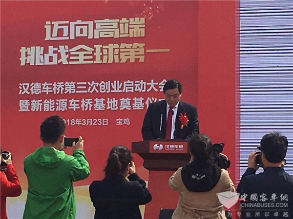 2018年3月23日上午,陕西汉德车桥有限公司第三次创业启动大会暨新能源车桥基地奠基仪式在宝鸡蔡家坡经济技术开发区举行。