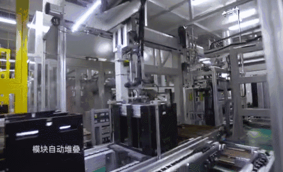 自动堆叠系统对完成预处理的电芯,自动导入工艺配方进行堆叠,由视觉与机器人配合实时进行识别校准,实现精准堆叠、压紧,生成电池模组,模组核心参数自动记录并自动校验,自动生成唯一识别码。
