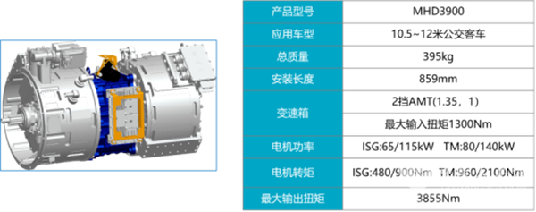 MHD系列产品可多模式共同驱动车辆,能够根据实时路况及整车状态,选择最佳驱动方案,专业应对频繁启停的公交工况及高里程需求而设计,同系列还有MHD3500、MHD4500等产品满足客户的不同需求。