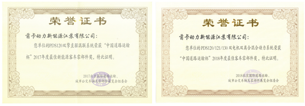 全球专利的双电机双离合混合动力系统,系连续第二次参加道路运输展。以其独有的双电机同时纯电驱动起步时爬坡度≥20%的动力性表现、独特算法和控制逻辑下节油率≥65%的经济性表现,继获得“2017年度最佳新能源客车零部件奖”之后,蝉联获得“2018年度最佳客车零部件奖”。