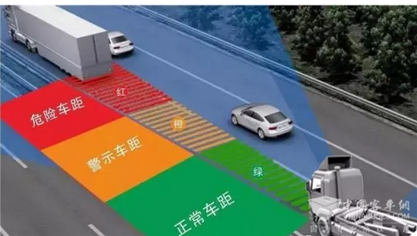 车距保持预警FCW:让驾驶员始终保持安全的行车距离,并能在车距存在危险时发出警报,并对超出安全距离进行智能减速