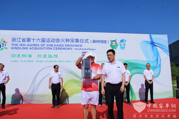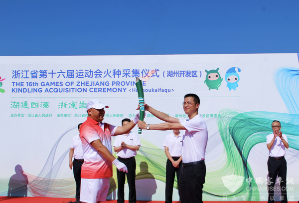 浙江省第十六届运动会火种采集仪式现场随着湖州开发区副主任陆杰宣布浙江省第十六届运动会火种采集仪式开始,微宏动力CEO吴扬先生接过湖州市体育局副局长林辉传递的火棒,完成火种采集。