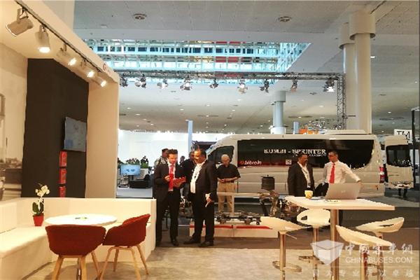展会首日,来自神秘东方中国的一抹红,引起了很多观众驻足参观。吉客车桥经济环保,有效降低保养成本的技术优势,吸引了很多观众的兴趣。参观者络绎不绝,吉客参会人员非常耐心地回答观众们各种问题。