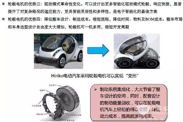 轮毂电机技术也被称为车轮内装电机技术,它的最大特点就是将动力装置、传动装置和制动装置都整合一起到轮毂内,得以将电动车辆的机械部分大为简化。