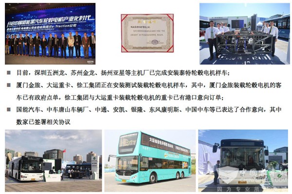据了解,目前宇通、东风、亚星客车、厦门金龙等客车企业已经在和泰特洽谈合作,国外还有马来西亚电动巴士企业、印度、美国等地企业。“轮毂电机直接在轮子上面,省掉了传动器之后,故障率直线下降。我们的轮毂电机可以提供10年百万公里的免费售后维护服务。”吕超自信地表示。