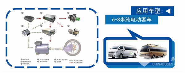 另外一种纯电动直驱方案能够实现公交/通勤车型(5-12米)全覆盖,拥有十五种动力系统配置,多种附件组合能够满足各种车型需求,结构构造简单,市场保有量大,故障率低,主要应用于5-12米纯电动客车。