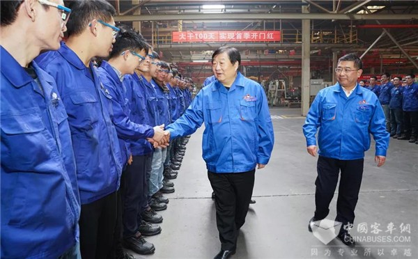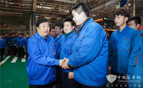 在重卡装配线及汉德车桥生产车间,谭旭光向辛勤付出的一线员工表示衷心感谢,他说,广大一线干部员工敬业奉献,在高产期间热情高涨,企业取得了良好业绩。他强调,“客户满意是我们的宗旨”是企业的核心价值观,陕重汽干部职工要继续践行“不争第一,就是在混”“一天当两天半用”,打造最具成本竞争力的产品,最大程度的满足客户需求,助力企业高质量发展。