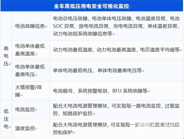 对全车高低压用电安全真正做到【可视化监控】,保障用电安全,保障防火安全性。
