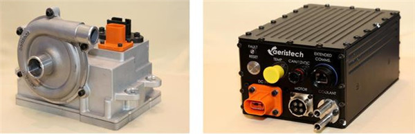活动现场展示的燃料电池空压机样品(左图为:集成式燃料电池空压机;右图为:分体式燃料电池空压机的控制器)。毅合捷燃料电池空压机为离心涡轮式,采用高速轴承、超高速永磁电机和高效控制器,具有结构紧凑、零部件少、无易损件及低功率损耗等优势,被视为当前燃料电池空压机的最佳方案。