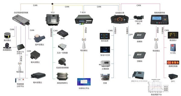 -车辆拓扑尽可能简洁(接插件、线束越少越好),以保证最高可靠性