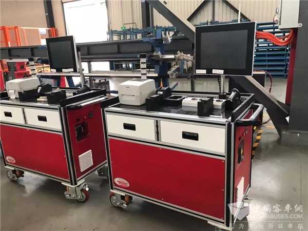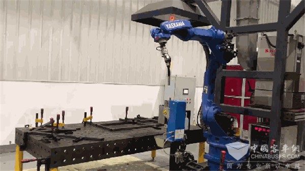 他们可升降、翻转,对底盘进行分片和总成。同时,该焊接机器人可兼容8.5米、10.5米、12米三种车型的中段总成焊接。通过使用焊接机器人,能将焊接质量以数值的形式反映出来,从而稳定和提高焊接质量,改善工人的劳动环境。