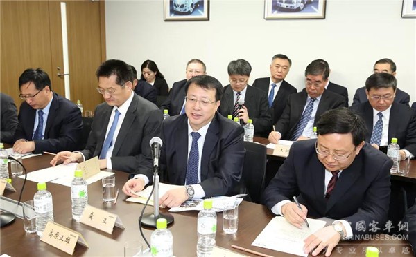 谭旭光向考察团汇报了潍柴(东京)科技创新中心的目标定位、发展成绩及重点研发项目进展。