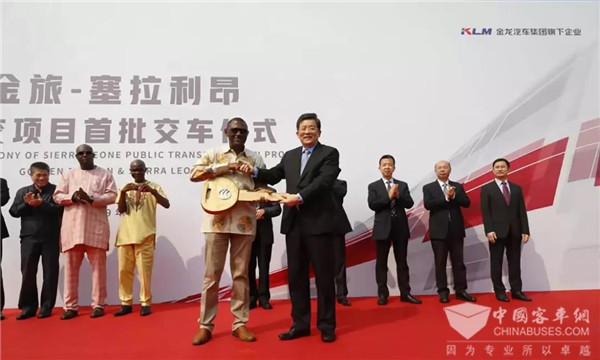 塞拉利昂交通部副部长萨迪科·希拉(Sadike Silla)、塞拉利昂公交总公司副总经理保罗·塔克(Paul Tucker)、塞拉利昂道路安全局技术副总监丹尼尔·卡提比(Daniel Kaitibie)、厦门市人民政府副秘书长陈通汕、中信保厦门分公司总经理郑忠平,以及福建省汽车工业集团有限公司董事长黄莼、福汽集团总经理、金龙汽车集团董事长邱志向、福汽集团副总经理、金龙汽车集团副董事长谢思瑜、厦门金龙旅行车有限公司总经理彭东庆等重量级嘉宾见证了这一历史时刻。