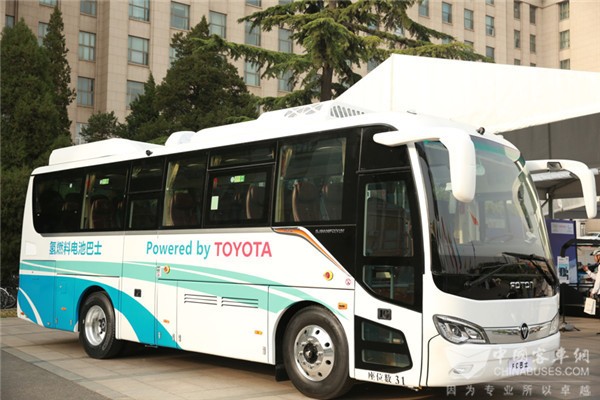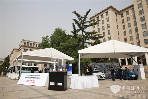 此次校园行,丰田汽车公司更向师生展出多款汽车车型,在众多展车中,一款之前从未见过的氢燃料电池客车尤其引人注目。据现场工作人员介绍,该车车长9米,搭载的是丰田汽车公司(下称丰田汽车)与北京亿华通科技股份有限公司(下称亿华通)共同研发的60kW氢燃料电池发动机,整车则由北汽福田汽车股份有限公司(下称北汽福田)集成生产。本次亮相清华的车型是三方合作样车的首秀。