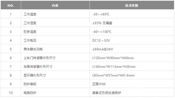 该系统由上车门传感器、车厢传感器及显示器组成;上车门传感器夹杆固定安装,能快速解决乘车上车门的易燃挥发物检测问题,可将危险物品阻挡在车门外;车厢传感器安装在车厢内部,具有自主吸入式分析功能,对易燃挥发物判定准确度高、检测灵敏、反应迅捷,可实现对车厢内整体安全指数综合把控,及时预警;