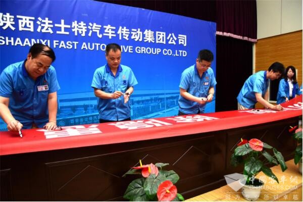 法士特集团总经理马旭耀作动员讲话。他说,安全生产工作就是要“小题大做”。看似偶然的事故,实则必然,都是工作不到位、意识不到位、落实不到位造成的。各级领导干部和广大员工要进一步提高安全生产意识,深刻认识企业严峻的安全生产形势和安全生产的重要性,真正将安全誓词在内心扎根;始终把履职尽责作为严管安全的唯一标准,在“安全生产月”活动中抓好责任落实,以零工伤、零缺陷为目标,在危险识别、危险识别之后的落实、全面人员梳理、落实安全生产责任制方面狠下功夫,梳理完善安全生产责任体系,提前做好预防与调整,持续强化现场管控,夯实安全生产管理基础,提升安全生产管理能力,齐心协力、全员共管,推动“要我安全”向“我要安全”转变,确保安全生产形势持续稳定,为公司生产经营保驾护航。