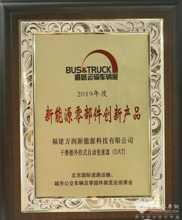 值得一提的是,本次带来的“干摩擦外控式"自动变速器获得了北京国际道路运输、城市公交车辆及零部件展览会组委会颁发的“新能源客车零部件创新产品”奖项,其凭借其稳定可靠、故障率低、换挡平顺、无动力中断、高制动能量回收等优势,获得了业内人士广泛赞誉—DAT变速器产品的良好品质,也再一次得到了印证。
