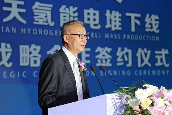 石俊峰致辞时表示:"龙蟠和明天氢能的携手,代表了龙蟠对明天氢能未来长期发展前景的高度认可,坚信明天氢能将会成长为中国氢能与燃料电池领域内的领军企业。同时,合作也体现了龙蟠科技作为一家传统的车用精细化学品公司,在整个汽车产业大变革、大发展的环境下,向一家高科技、新能源化学品企业转型的决心和信心。"