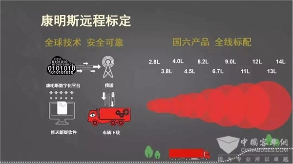 1、远程标定升级:在这个软件技术蓬勃发展的时代,我们的手机如果一段时间不升级软件,就会出现卡滞、新功能无法使用等问题。发动机也是一样,随时安装最新的发动机软件,就是出勤的可靠保障。康明斯开发的远程标定升级技术,能够让客户足不出户,简单操作车辆上的按键,5分钟就完成一次软件升级,不断优化发动机性能,提升车辆出勤率,降本增效。符合抗“疫”期间,“零接触”的宗旨。