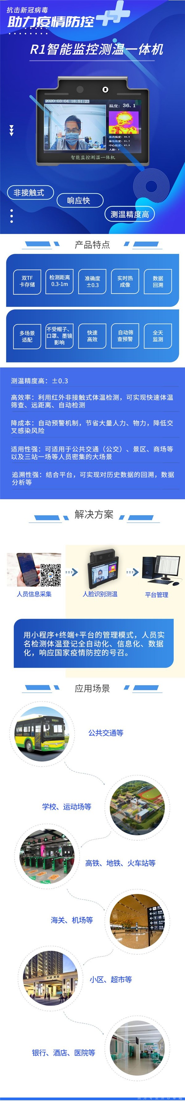 疫情未结束,全球疫情防控形势日益严峻,防控工作依然任重道远。目前,全国各地已开始复工复产复课,在大规模的人员流动下,传统的体温检测将面临许多问题;效率低下、需要大量人力、无法做数据统计分析、精度不高、无法做到全天候监测......为应对疫情,昊岳科技推出了一款智能监控测温一体机,为疫情防控助力!