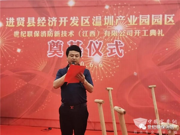 奠基仪式由市场总监余长青主持,监理单位代表、施工单位代表分别发言。董事长梅盛先生发表了热情洋溢的讲话,向出席仪式的领导和嘉宾表示诚挚的欢迎和衷心的感谢,同时也介绍了世纪联保(江西)有限公司项目情况。