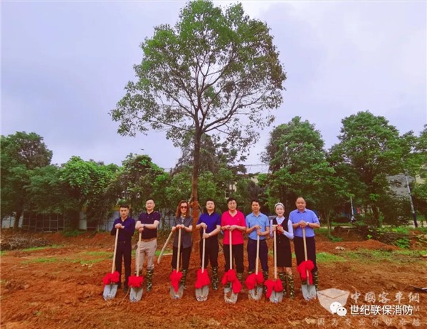 在一片祥和热烈的氛围中,公司领导共同栽下纪念树,郁郁葱葱的香樟树植于沃土,将见证世纪联保江西工厂的建设与成长。