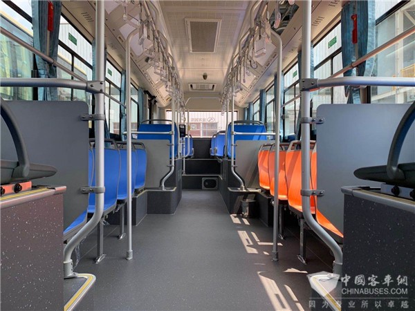 据介绍,这种布局可以带来更加舒适的出行体验。在上下车方面,新能源地铁巴士利用空气悬架,可以让车厢侧身,车门随意变高变低,通过低地板登乘,无需传统的阶梯,完全做到一步上下车,特别方便快捷;在车厢内部,地板低、通道宽的布局带来了更大的乘坐空间,而且车内也没有常见的台阶存在,有效解决了过去驱动技术无法解决的传统公共汽车车型后山高、中门后台阶上站不稳等安全隐患;在服务细节上,新能源地铁巴士为乘客设置了母子座、USB双控充电插座、轮椅安全区,以及为驾驶员安装了能减少视线盲区的电子倒车镜。