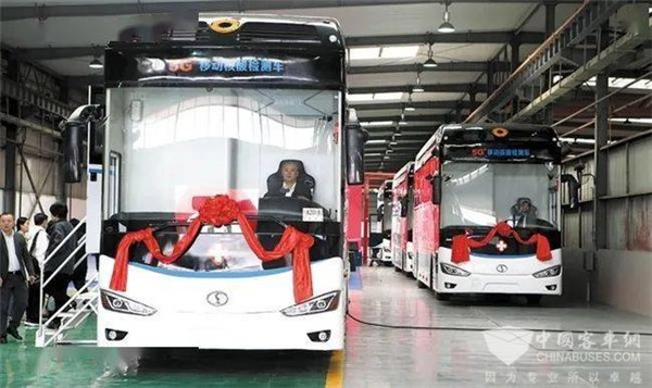 2020年9月29日,由蜀都客车研制的国内首批5G智能移动核酸检测车在成都成功下线。玉柴为该批“抗疫利器”提供独家动力支持。
