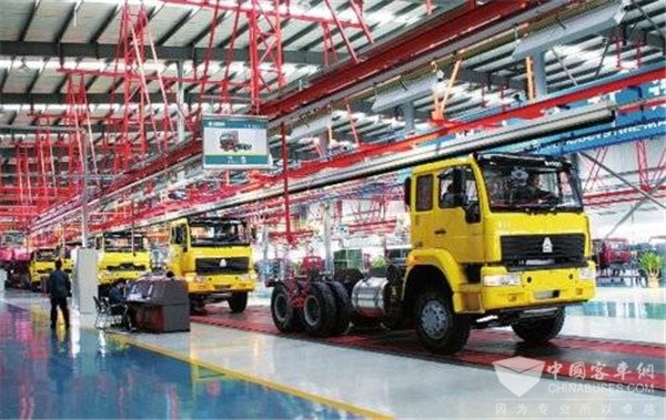 图为中国重汽新型车辆生产线。