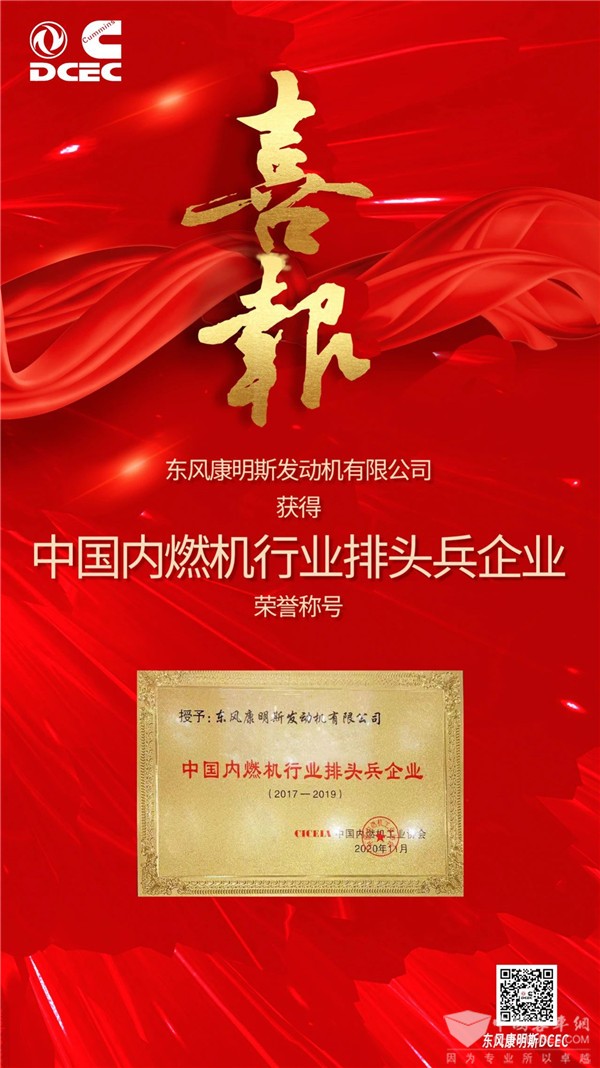 实力引领行业转型升级 东风康明斯荣获“中国内燃机行业排头兵企业”称号