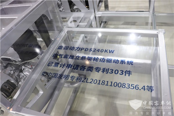 各个厂家推出的地铁巴士产品创新的背后是盘毂动力拥有300多项专利的轴向磁场电机与四气囊独立悬架轮边驱动系统,在这套驱动系统背后有盘毂在轴向磁场电机、4气囊独立悬架、电子差速等多项核心技术的布局。