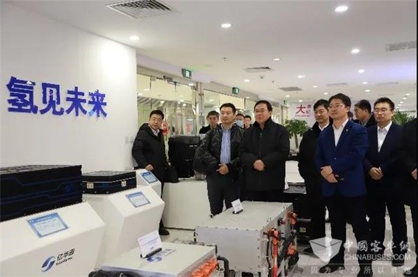张玉卓一行考察了亿华通系列发动机产品、上海神力电堆及测试台产品,参观了燃料电池发动机性能测试实验室,试乘了搭载亿华通最新一代氢燃料电池发动机的旅游客车,张玉卓董事长对亿华通自主研发实力和前瞻性布局颇为肯定,他认为随着技术日趋成熟,成本大幅下降,氢能产业正迎来快速发展的战略机遇期,在此背景下,中国石化将持续加大氢能领域投入力度,着力打造氢能产业链和生态圈。