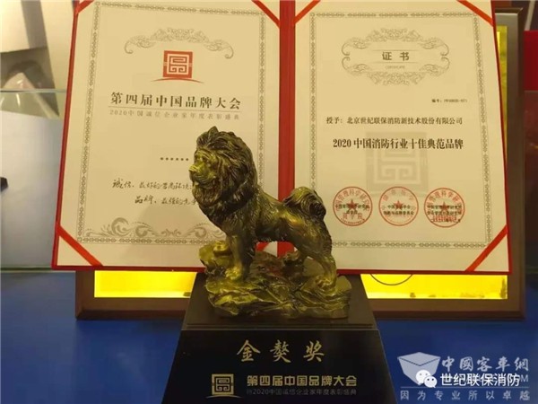 北京世纪星获得2020中国消防行业十佳典范品牌金獒奖