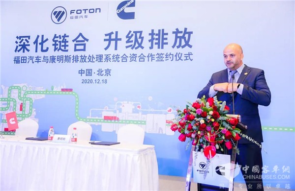 康明斯中国业务负责人、康明斯副总裁石内森(Nathan Stoner)表示:"依托双方过去15年的双赢合作经验,我们将充分利用双方技术和资源优势,深入了解客户需求,结合前瞻的设计开发能力,成熟的配套产品集成能力,先进的尾气排放控制技术,创新的零部件设计和生产能力,为客户提供完备的动力集成解决方案,与福田汽车携手为终端用户创造更大价值。”