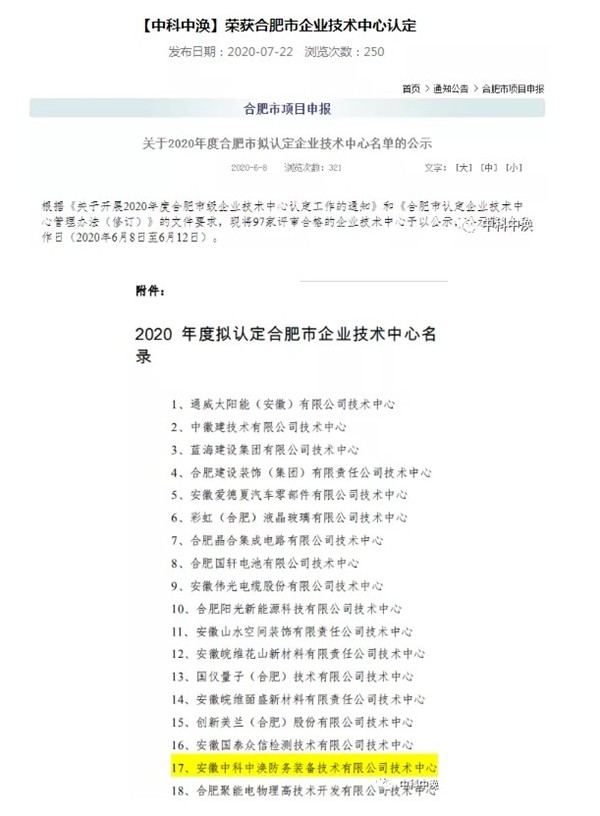 合肥市经信局发布了《关于2020年度合肥市拟认定企业技术中心名单的公示》,中科中涣荣列其中。市级企业技术中心的认定是对各产业中技术创新能力较强、创新机制较好、创新绩效显著、具有重要示范作用的企业予以肯定,并给予相应的政策支持。此次荣获认定表明了中科中涣在科技创新能力、新产品研发等方面较大的优势,同时体现了公司在技术创新方面的卓越成就。